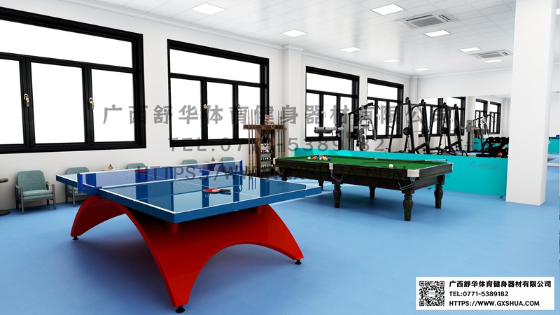10.台球桌*1张-单位健身房配置台球桌,为员工的业余生活增添了乐趣和选择。与传统的健身器材锻炼相比,台球具有更强的娱乐性和趣味性,能够吸引更多员工参与到健身活动中来,提高健身房的使用率,让员工在工作之余有更多放松身心的方式。